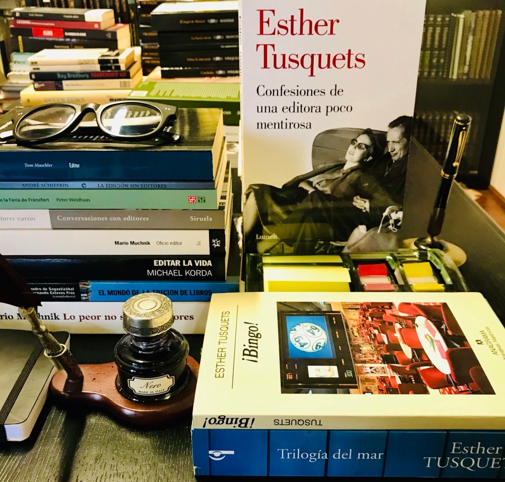 Esther Tusquets fue además de editora, novelista. En 1978 publicó su primera novela, “El mismo mar de todos los veranos”, que acabó conformando una trilogía junto con “El amor es un juego solitario” (ganadora del Premio Ciudad de Barcelona en el año 1979) y “Varada tras el último naufragio”, en el año 1980. Su última novela “¡Bingo!” se publicó en el 2007. También leí (en versión digital) dos textos autobiográficos: “Habíamos ganado la guerra” y otro más, “Tiempos que fueron”, que escribió en conjunto con su hermano Oscar Tusquets Blanca .