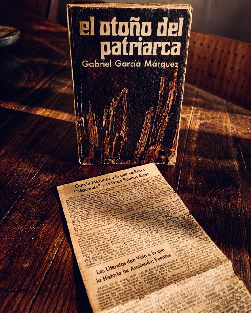 Mi entrada a la literatura de Gabriel García Márquez fue temprana. Aunque hoy parezca difícil de creer, lo leí por primera vez a los once años, en 1968, con el ejemplar de Cien años de soledad que recién había leído mi padre. Años después, a los diecinueve, leí El otoño del patriarca en una primera edición de marzo de 1975 publicada por Plaza & Janés que hoy, medio siglo después, deja escapar algunas hojas al abrirla. Entre sus páginas encontré además un recorte de prensa de la época, guardado ahí durante décadas, como si el libro hubiera conservado no solo la novela, sino también algo del clima en que la leí por primera vez. Yo vivía entonces en el Distrito Federal, adonde había llegado en 1974, a raíz del ascenso laboral de mi padre. Volver ahora a esa novela, en ese ejemplar y con ese recorte adentro, no significa solo releer un texto central de la narrativa de la dictadura; significa volver a una escena muy antigua de mi vida como lector, a un momento de desarraigo que el libro había conservado mejor que yo.